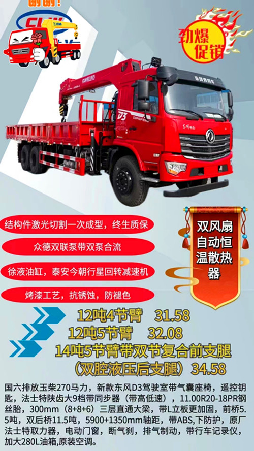 國六排放玉柴270馬力,新款東風D3駕駛室帶氣囊座椅,遙控鑰匙,法士特陜齒大9檔帶同步器(帶高低速),11.00R20-18PR鋼絲胎,300mm(8+8+6)三層直通大梁,帶L立板更加固,前橋55噸,雙后橋11.5噸,5900+1350mm軸距,帶ABS,下防護,原廠法士特取力器,電動門窗,斷氣剎,排氣制動,帶行車記錄儀,加大280L油箱,原裝空調。