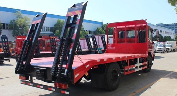 主要配置二:玉柴220馬力國六六缸發動機,4200/4500軸距,法士特8檔高低檔變速箱,250雙層大梁,1000R20鋼絲胎,9T后橋,多功能方向盤,原廠空調,氣囊座椅,中控鎖,電動門窗,遙控鑰匙。整車尺寸::7800,8415×2550×2960。上裝采用100*100方鋼制作,5個厚花紋板,雙簧爬梯?傎|量18噸,額定11.105噸,整備6.7噸。(可選裝純直板、選裝單缸單節、雙節折疊液壓爬梯)可拉15噸挖機。
