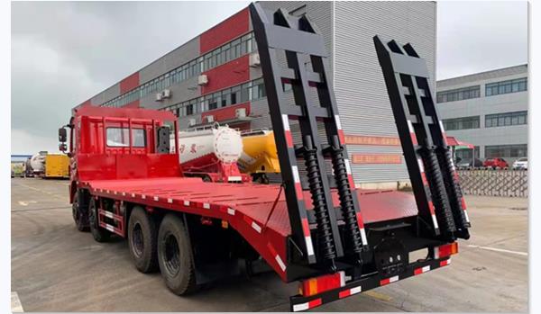 主要配置:玉柴350馬力國六發動機,法士特10檔高低速,齊星錦程駕駛室,300雙層大梁,13T雙后橋,1100R20鋼絲輪胎,軸距1950+3300/3700+1350,整車尺寸:10700/11200×2500×3150,ABS,電動門窗,行車記錄儀,氣囊座椅.總質量31噸,整備質量13.75噸、14.5噸,額定載質量17.12噸。上裝采用120*120方鋼,8mm厚花紋板,雙簧爬梯,固定支腿,加寬龍門架?蛇x裝單節液壓爬梯,單缸雙節液壓爬梯?衫30噸挖機。