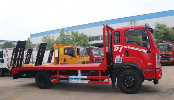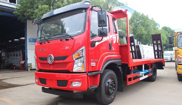 采用東風專底D1V駕駛室,國六云內170/玉柴200馬力發動機,3950/4500軸距,長泰8檔帶高低速變速箱,250雙層大梁,9.00R20鋼絲胎,8T后橋。配備新型LED日行燈,多功能方向盤,氣囊座椅,中控鎖,電動門窗,遙控鑰匙,原廠空調。整車尺寸:7400/8425X2500X2960 ,板長含斜坡4.9/5.9米 含斜坡。上裝采用100*100方鋼,5mm厚花紋板,標配雙彈簧,雙爬梯,固定后支腿?蛇x裝純平板,選裝單節液壓,單缸雙節液壓折疊爬梯?衫15噸內挖機。
