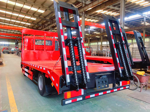 藍牌小挖機拖車上裝橫梁采用10*10規格5mm厚方鋼,貨箱平板采用5mm厚花紋板,爬梯采用雙簧設計,帶有后支腿,貨箱平板長度4米,是運輸50、60、70、80、90小型挖掘機、小型工程機械等最理想的拖車。